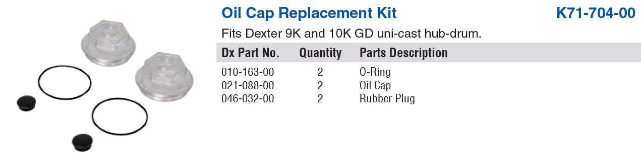 DEXTER SCREW-ON OIL CAP KIT WITH O-RING, PLUG & GASKET (2-EACH) 9K-10K GENERAL DUTY (POST AUG 2009) NEW STYLE